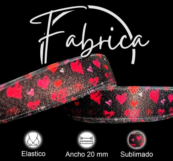Bretel sublimado 20 mm Corazones Negros y Rojos (1 metro)